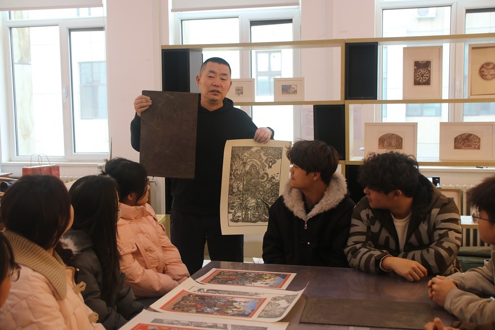 在木刻版画教室,老师一边示范刻制,一边讲解:“传统艺术创作中代表守护与平安的经典元素,均能与国安知识中守护家国安宁等概念高度契合。”随后,师生们以刀代笔,将兰州地域符号(中山桥、黄河水车、白塔山等)与国安元素(盾牌、长城、利剑等)融为一体,共同创作独具兰州元素的国安版画,在创作中了解国家安全知识,在传承中铸牢国家安全意识。