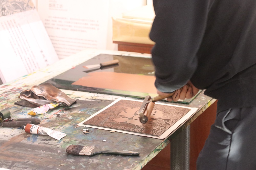 活动现场,兰州职业技术学院的师生们现场示范创作,带来了一场兼具文化韵味与教育意义的艺术盛宴。本次活动打破了传统国家安全教育的刻板模式,通过充分挖掘兰州深厚的非物质文化遗产资源,将剪纸、木刻版画、掐丝珐琅彩、传统拓印等非遗技艺与国家安全知识巧妙融合,让国安理念在师生们指尖创作、沉浸式体验过程中自然传播。
