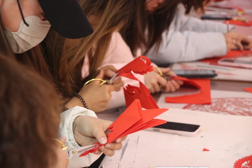 兰州剪纸教室内,老师将“黄河生态安全”“网络安全警示”等主题作为示例,向同学们讲解如何通过艺术构思在镂空纹样中融入的地域文化元素,让安全知识转化为直观的视觉语言。同学们在老师指导下,手持剪刀认真裁剪,将对家国平安的期盼融入每一处纹路。