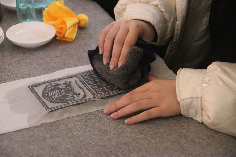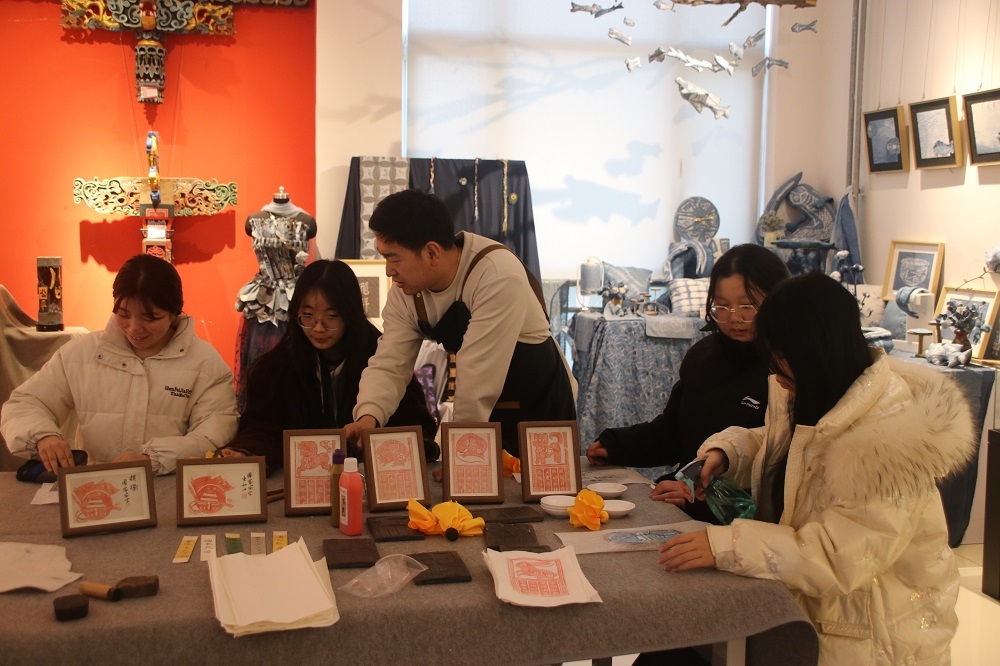 传统拓印技艺的教学现场,师生们创新性地将国安元素与兰州古城墙、十二生肖等形象相结合,以拓印手法传递守护理念。其中,刻有“防泄密”“反诈骗”字样的印章造型格外醒目,在拓印过程中不断强化参与者的安全警示意识,让每一幅拓印作品都成为国安宣传的“移动课堂”。各类作品同场展示,形成了全方位、多角度的国安宣传氛围。